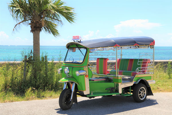 "トゥクトゥク"で無料送迎いたします。ご予約の際にお申し付け下さい。